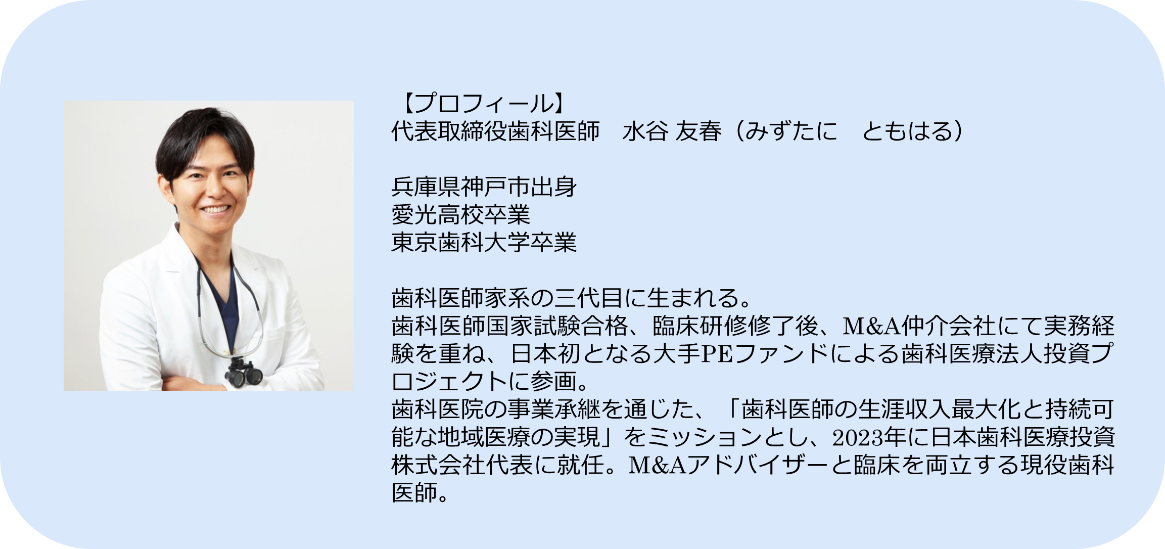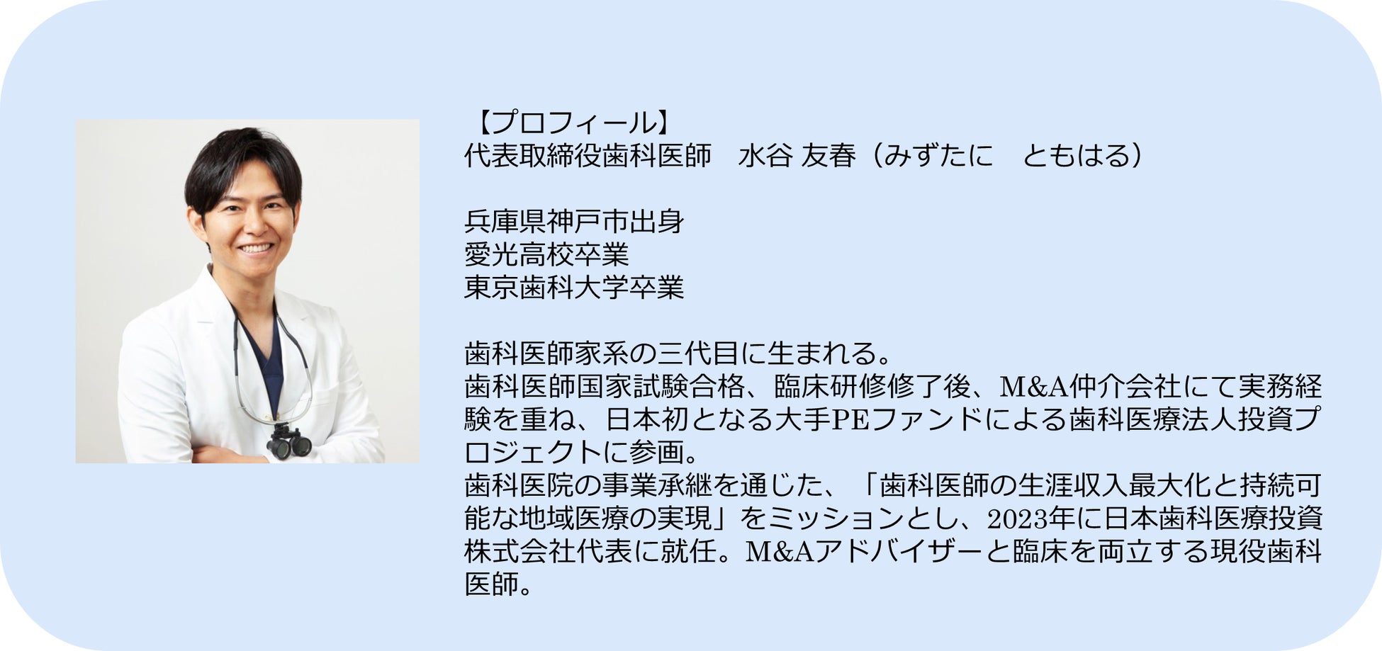 代表者:代表取締役 歯科医師 水谷友春