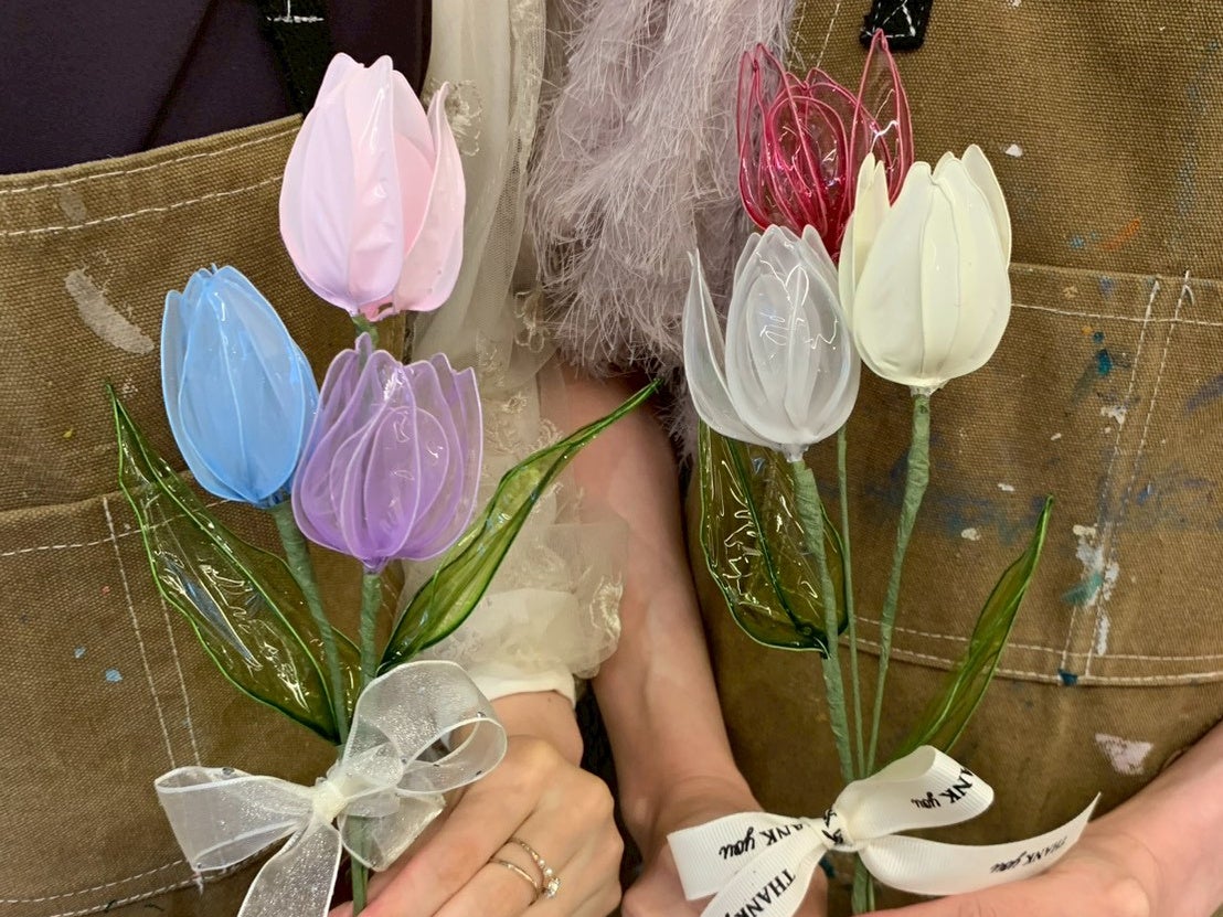 新宿御苑前にオープンしたスタジオでは、透明感あふれるディップフラワーや、温かみのあるモールフラワーをつくるワークショップを開催しています。