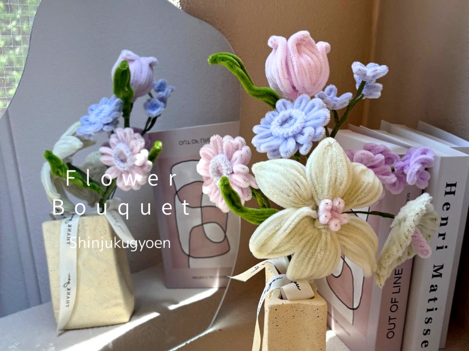 ふわふわのモールを使い、やさしい質感のお花を作る体験ができます。