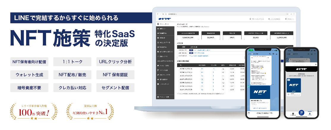 キリフダはNFTの受け取りに必要なウォレット生成から配布・所有確認などの機能を一元的に提供するSaaSです。マスマーケティングやセグメントマーケティングにNFTを活用したい事業者を包括的にサポートいたします。