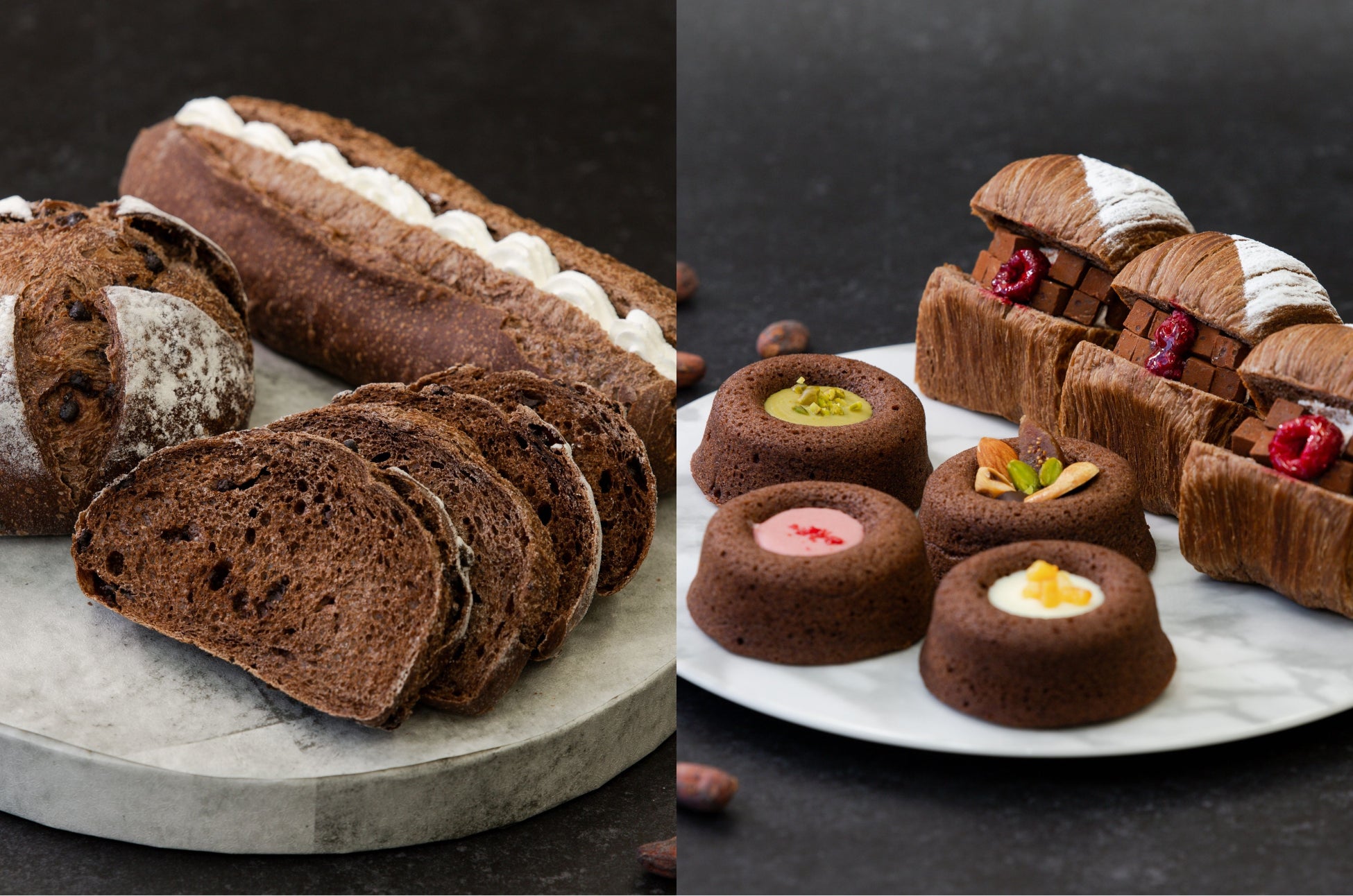 〇 特長:パンや菓子にチョコレートの豊かな薫りと深みのある味わいを付与する練り込みチョコレートです。ココアをふるう手間も、チョコレートを溶かす必要もない、生地に馴染みやすいペースト状で作業時間の短縮につながります。プラントベースに対応し(※3)、RSPO MB認証を取得しています。