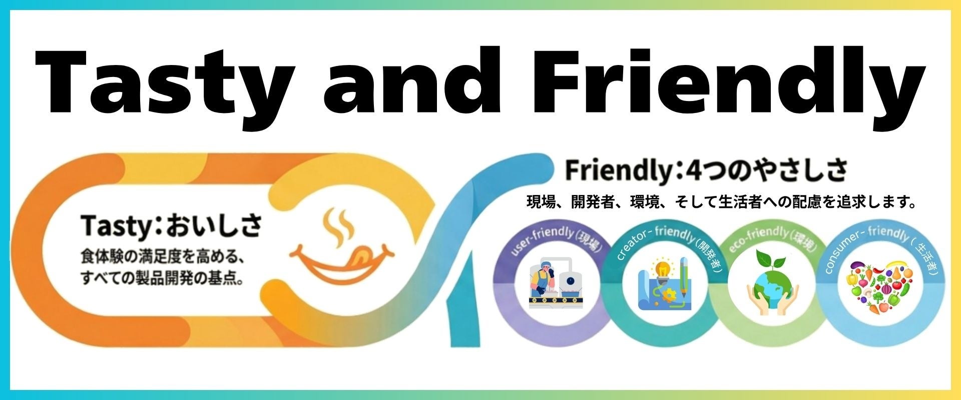 「Tasty and Friendly」をテーマに、おいしさと4つのやさしさで食の未来をサポート