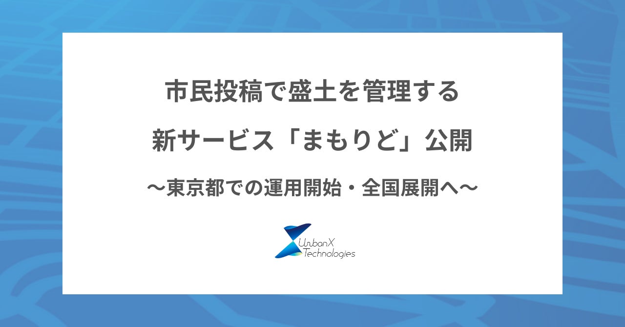 株式会社アーバンエックステクノロジーズ(本社:東京都渋谷区、以下 アーバンエックス)は、自治体が行う盛土管理業務を市民投稿でサポートする新サービス「まもりど」を公開しました。本サービスは、UPGRADE with TOKYOによる第26回のピッチコンテストに優勝したことによる、東京都とアーバンエックスの協働開発サービスです。今後は、全国の自治体への展開を目指します。