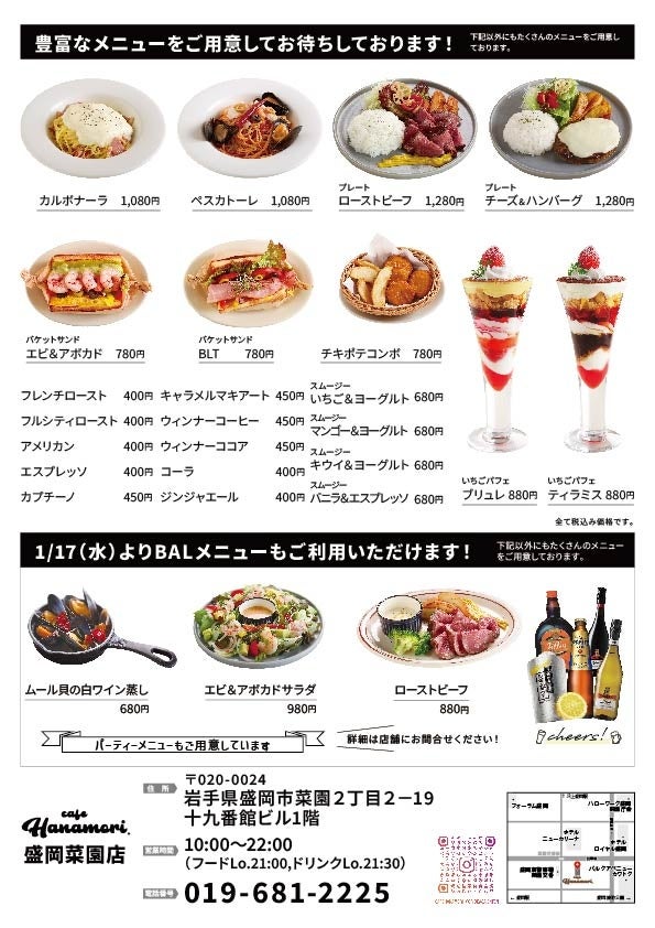【岩手県盛岡市】cafe Hanamori盛岡菜園店 1/12(金)オープン!