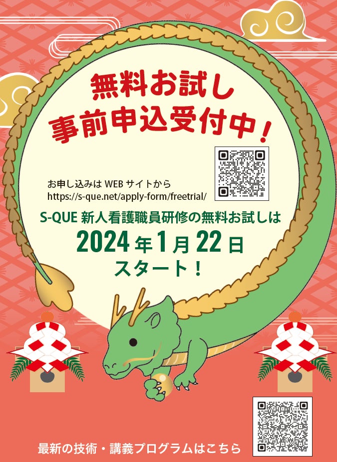 2024年1月22日にスタートする、看護技術のeラーニング「S-QUE新人看護職員研修」無料お試しの申込を受け付け中!