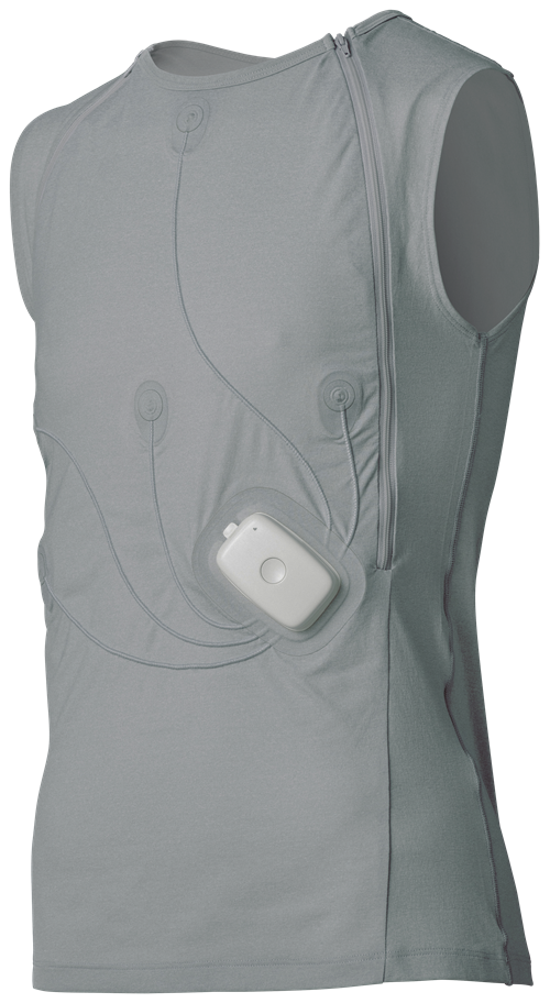 不整脈や狭心症の検査のためにホルター心電図検査が用いられることがありますが、従来の検査では、適切な位置に検査用電極を貼り付けるために医療機関を訪れ、24時間の測定後、再び医療機関を訪れて解析してもらうなど、受検者の負担が重いという難点がありました。この製品は、電極位置を規定するシャツ型の検査キットを受検者に送付し、計測後、データを蓄積したキットを返送すると解析結果が医療機関に送られるというサービスを提供することで、受検者の負担を大幅に減らすことができる点を特徴としています。製品のみならず、ビジネスモデルを含めた完成度