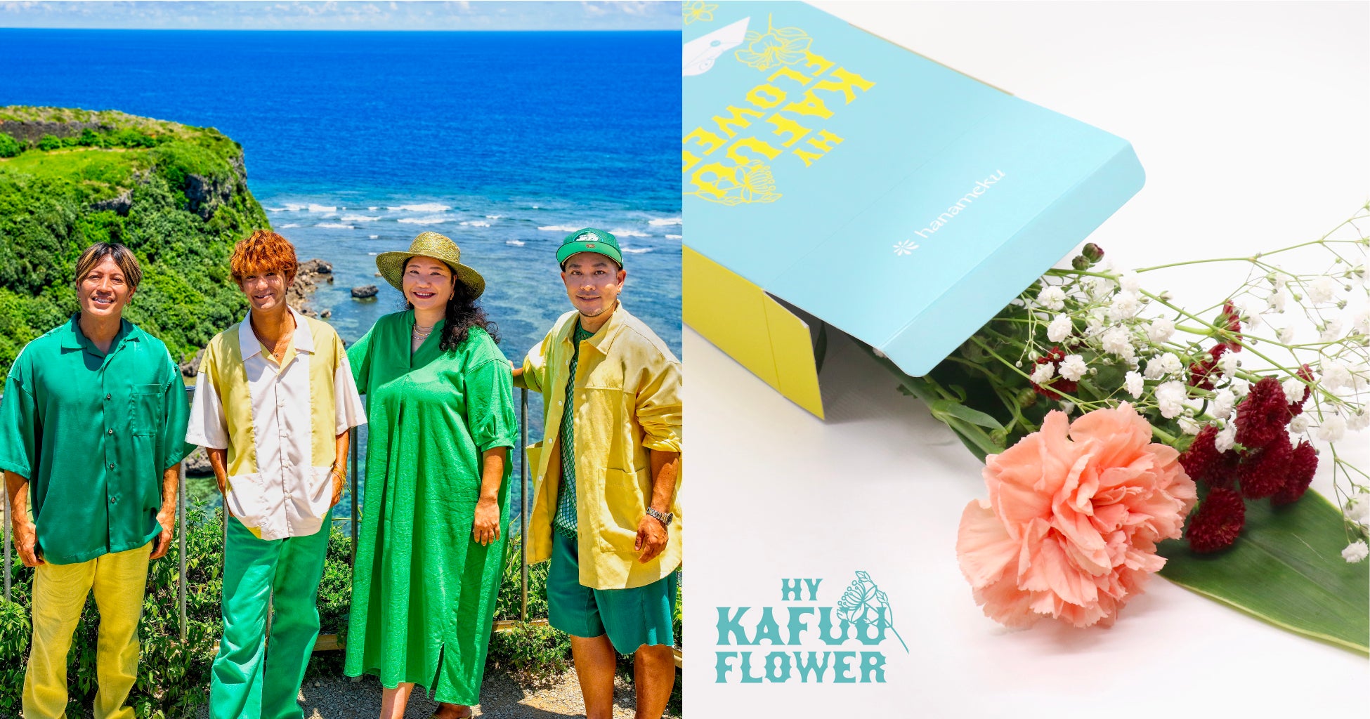 昨年リリースしたアルバムのタイトル「Kafuu」(カフー)は沖縄の言葉で“「果報」「良い知らせ」を運ぶ”という意味を持ち、今年行われている「HY Kafuu TOUR 2023」のあともファンの方々に”人々を笑顔にしたり、幸せにするものを届けたい”という思いから、花の定期便「hanameku(ハナメク)」(https://hanameku.jp)をサービス運営しているdivi株式会社が提携して「HY Kafuu Flower」を発売いたします。