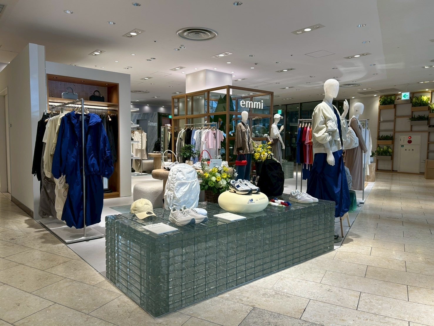 amu株式会社は、レディースファッションブランド 「emmi(エミ)」 渋谷ヒカリエShinQs店に廃漁具デザインタイル「amuca®タイル」を提供しました。emmiは、株式会社マッシュスタイルラボ(本社:東京都千代田区、代表取締役社長 近藤広幸)が展開する、デイリーウェアおよびウェルネス&トレーニングウェアを手がけるライフスタイルブランドです。