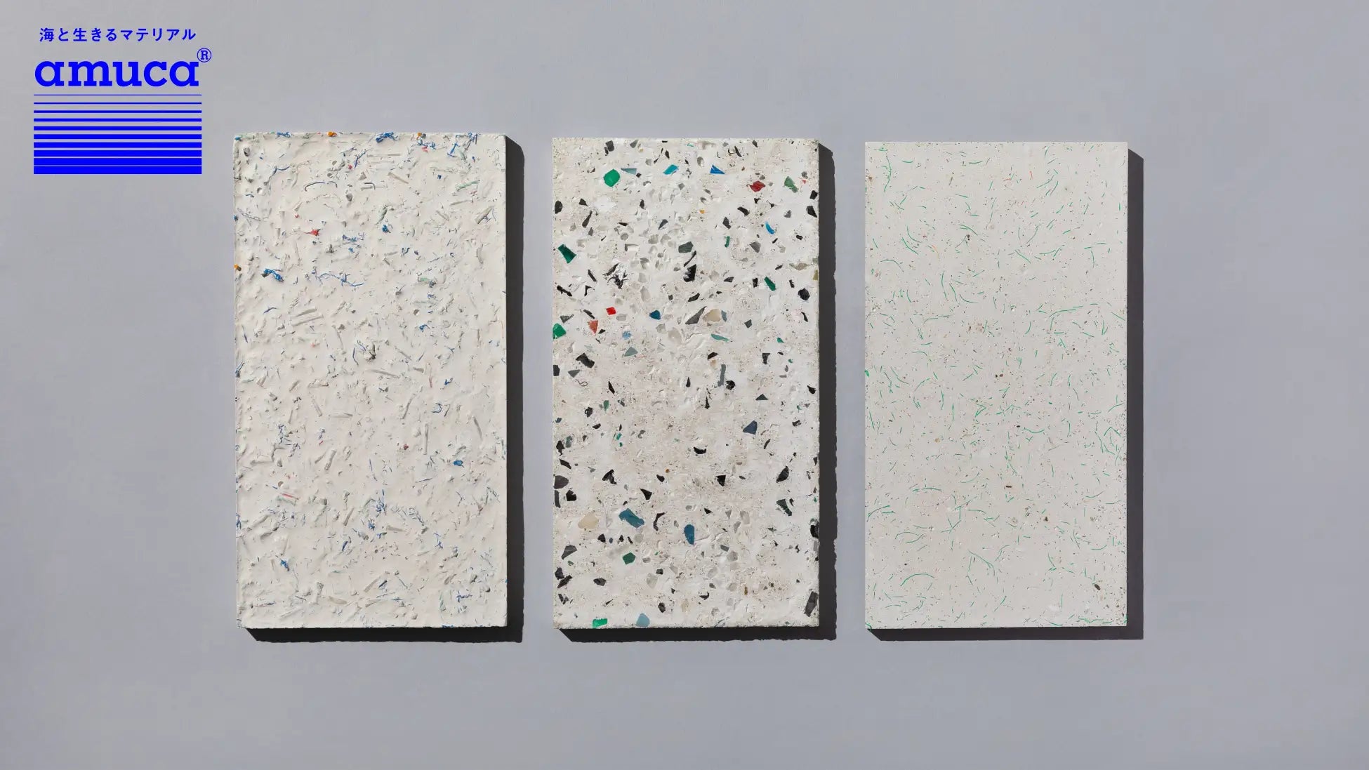 amuca®タイルは環境貢献、美しいデザイン、素材のストーリー性を兼ね備えたデザインセメントタイルです。リサイクルが難しい漁網やブイ、ロープなどを唯一無二の質感を持つタイルに変えることができます。