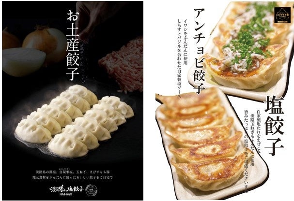 高級食材であるゑびすもち豚をはじめ淡路島玉ねぎをふんだんに使用した逸品餃子。藻塩で作る自家製塩だれをつけて食す新しい感覚の餃子です。また同じく自家製のしらすとアンチョビソースの塩餃子は、和洋中のお酒に合います。ご飯やパンとの相性も抜群!この機会をぜひお見逃しなく!