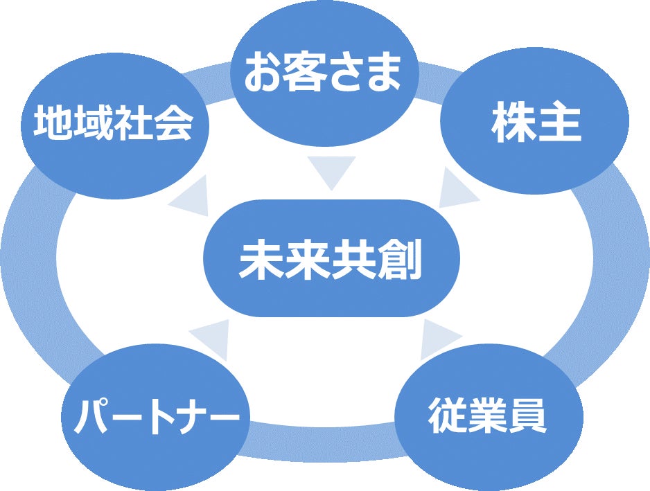 「未来共創推進部」は“変革エンジン” としてステークホルダーの皆さまと共に新たな価値を創造し、笑顔あふれる明るい未来を実現します。