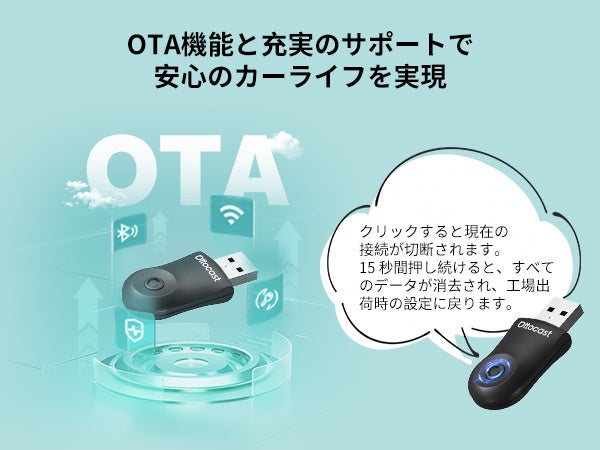 本製品は技術基準適合証明(認証番号:220-JP7656)を取得しており、安全にご使用いただけます。さらにOTAアップデート機能を搭載し、無線で最新ソフトウェアへ簡単に更新可能です。スマートボタンを1回押すだけで、現在の接続デバイスを切断し、別のデバイスへスムーズに切り替えられるため、利便性も抜群。日本国内ユーザーからの声を反映した安心設計で、快適なドライブ体験をサポートします。