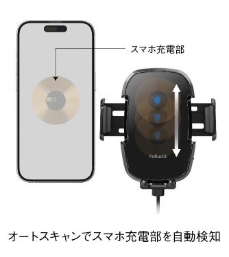 オートスキャン機能により、スマホ充電部を自動検知。正確に位置を合わせる事が出来るため