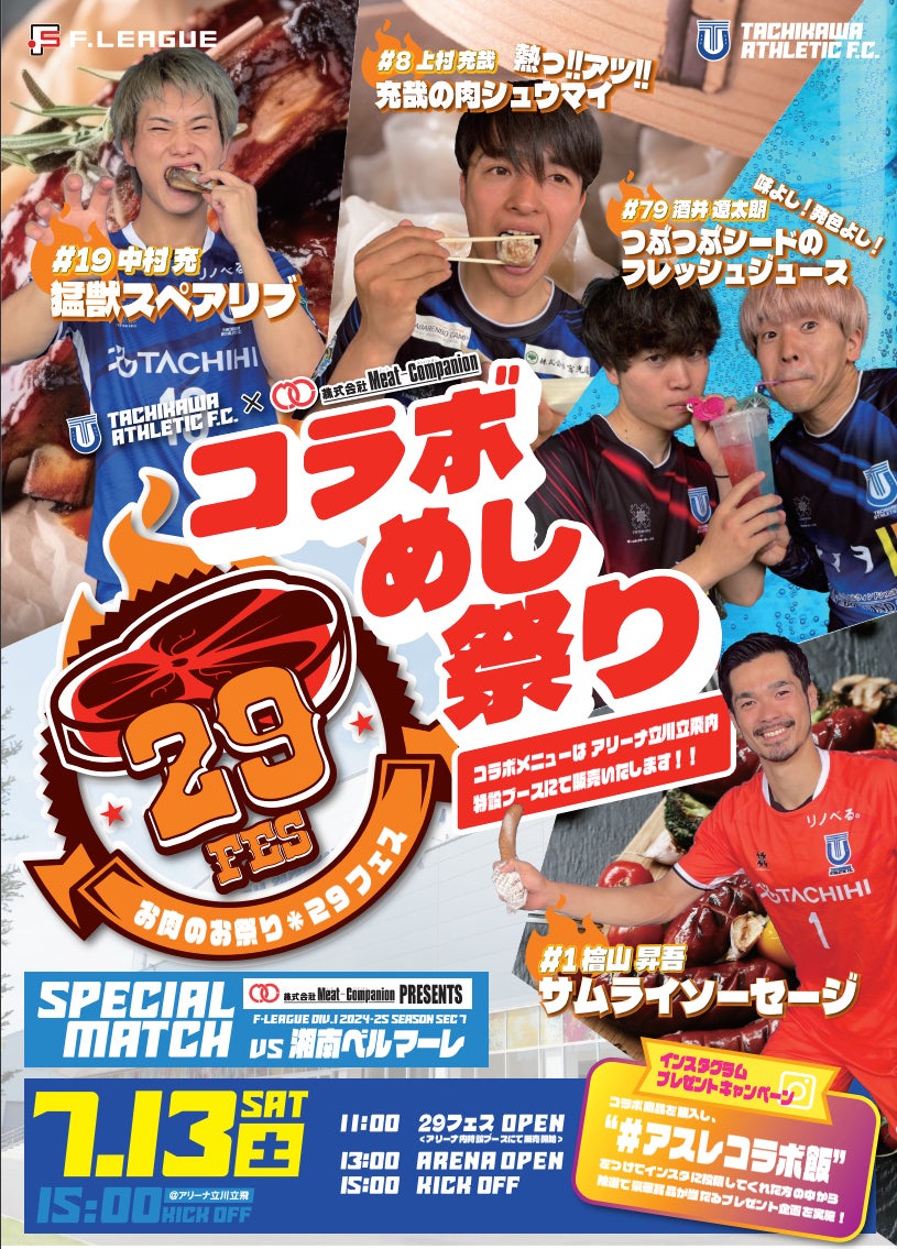 【立川アスレティックFC】7/13 湘南ベルマーレ戦 「お肉は私たちを強くする! Day」にて『29フェス』を開催!