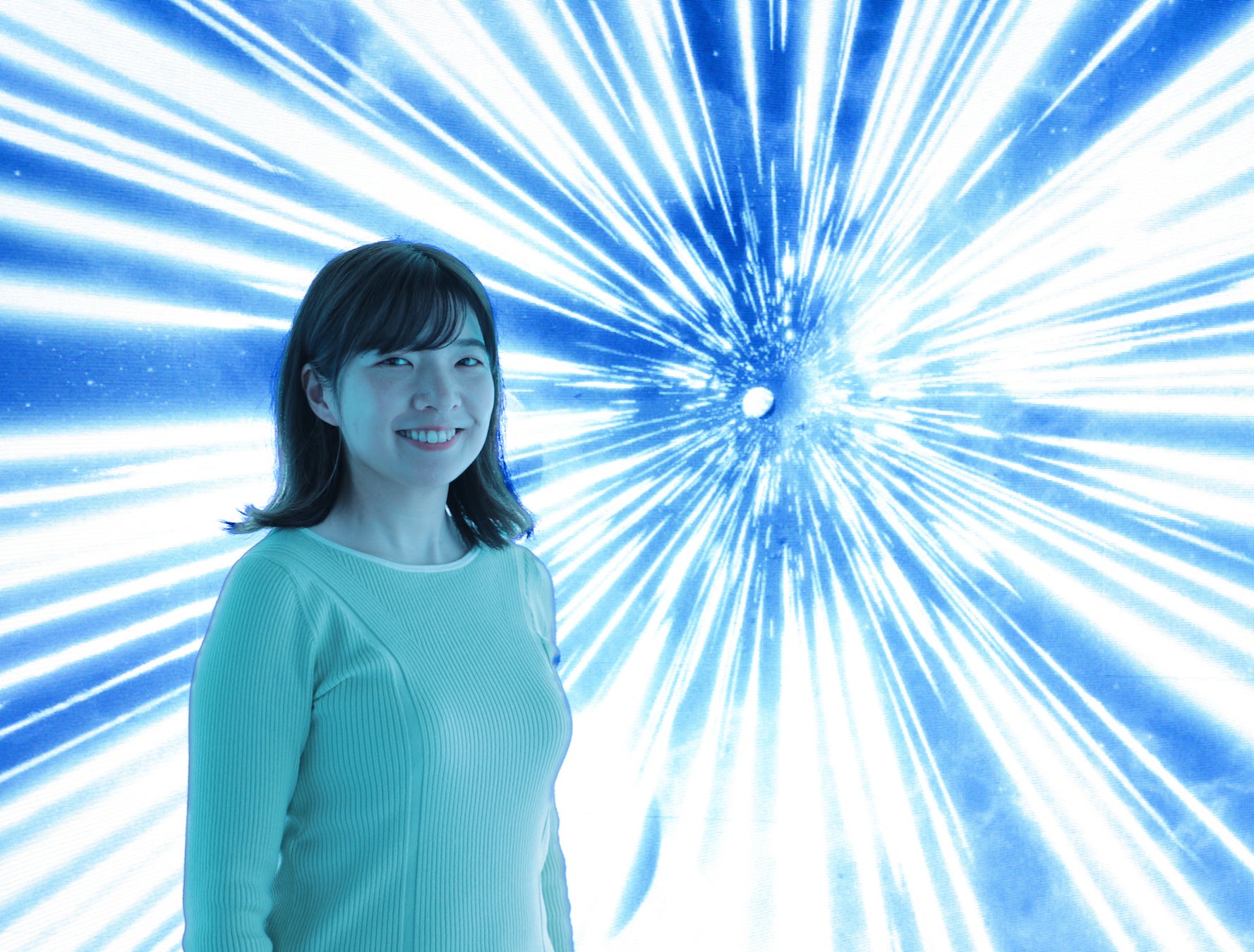 3DCGで構築した立体映像で宇宙や空を表現した「Universe」「Sky」、鮮やかな色合いの映像を紡いだ「Various expressions」など複数映像を制作。それぞれの映像は、タッチパネルで切り替えることが可能。タッチパネルのシステムもオリジナルデザインで制作しました。