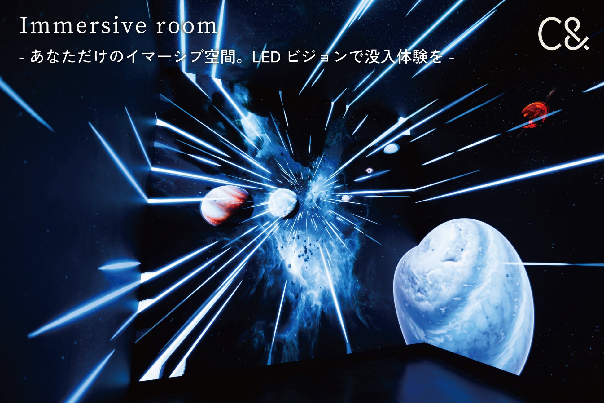 デジタルアート制作会社【C&|シーエンド】が新作コンテンツ「Immersive room」を公開。東京都内にあるホテルの特別ルームに設置されています。宿泊者だけが体験できる最高の没入体験をお楽しみ頂くことのできる空間です。