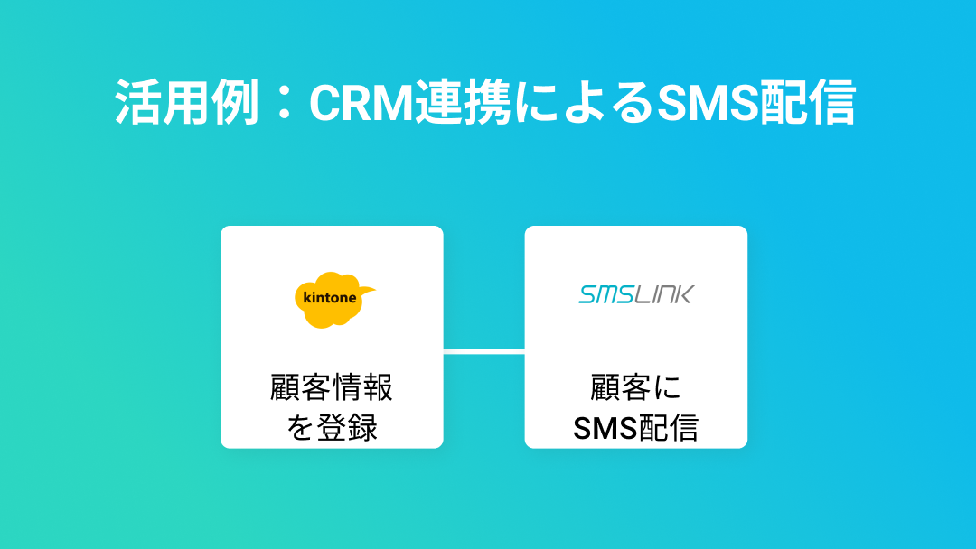 Yoom内のデータベース、kintone、SalesforceなどのCRMとSMSLINKを連携し、CRM内の情報を用いてSMSを自動的に送信します。