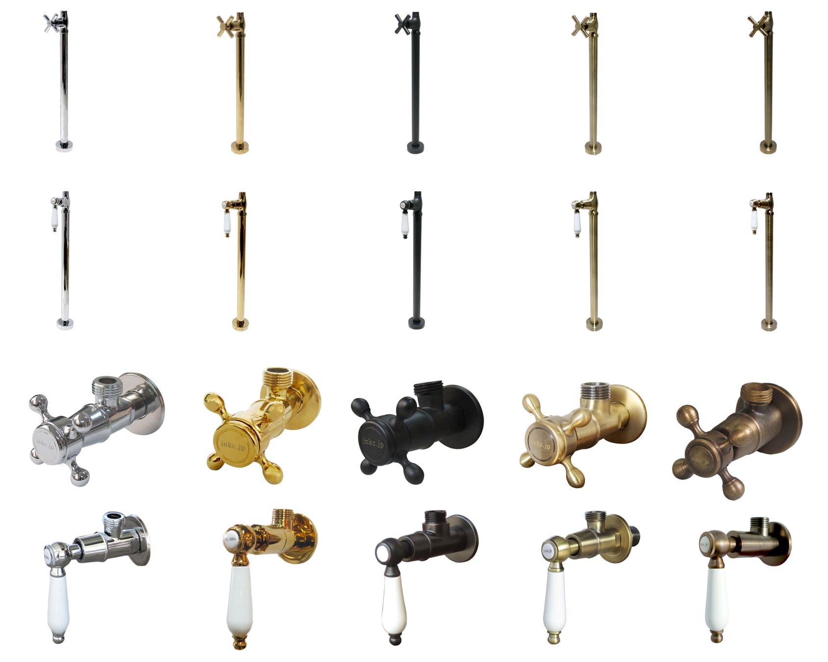 ストレート止水栓(床用)とアングル止水栓(壁用)がございます。