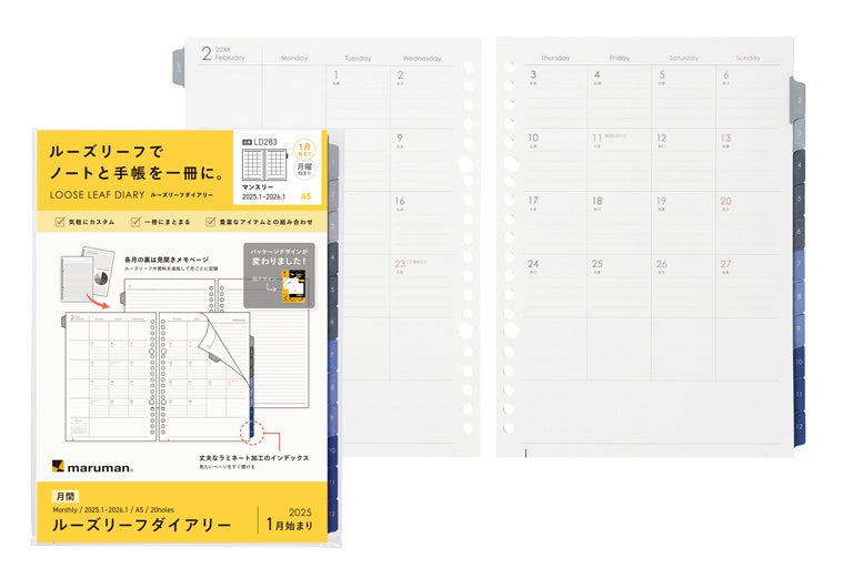製品名:2025 年 1 月始まり ルーズリーフダイアリー 月間