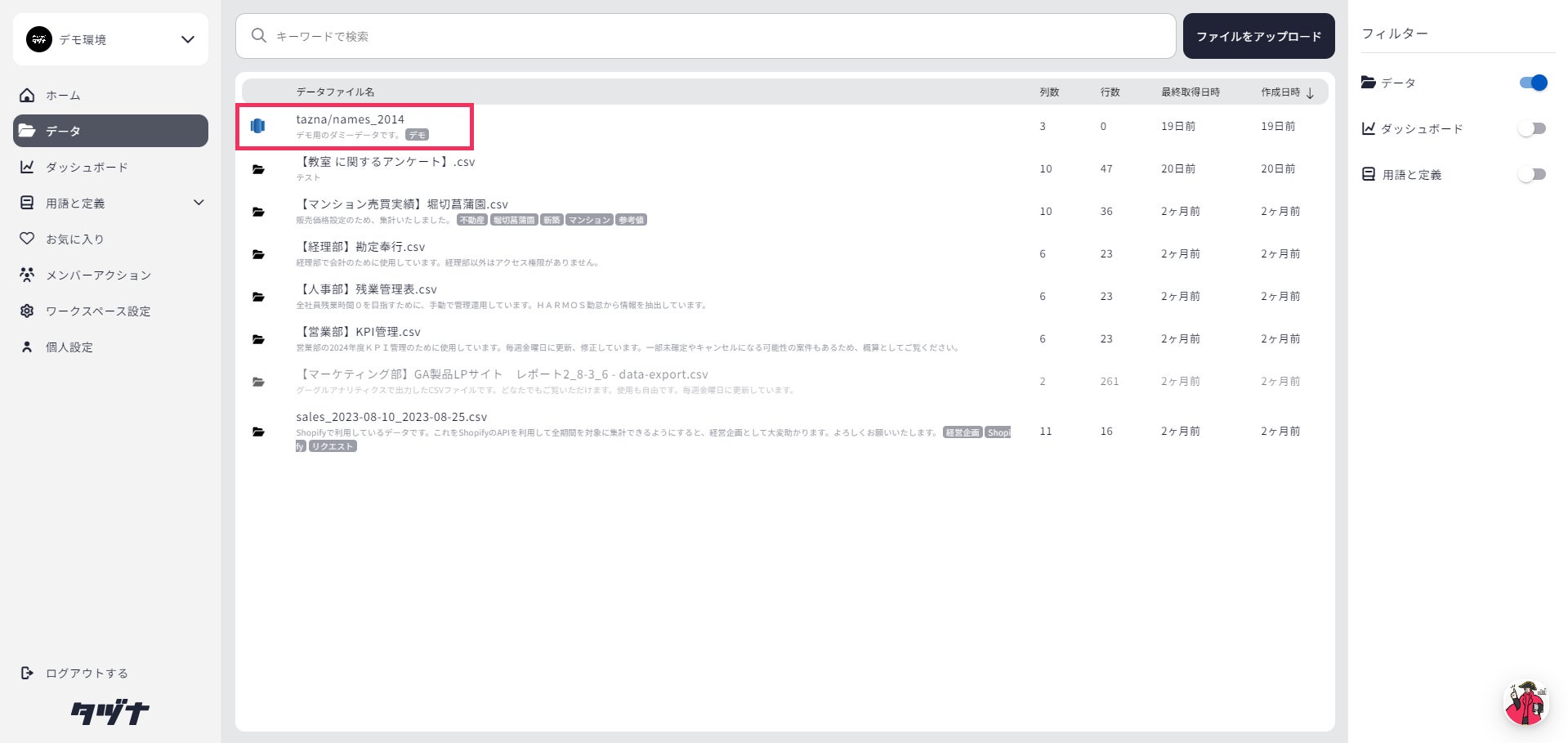 「タヅナ」は、データのサイロ化や属人的な業務を防止し、攻めのデータ管理を推進するデータカタログです。