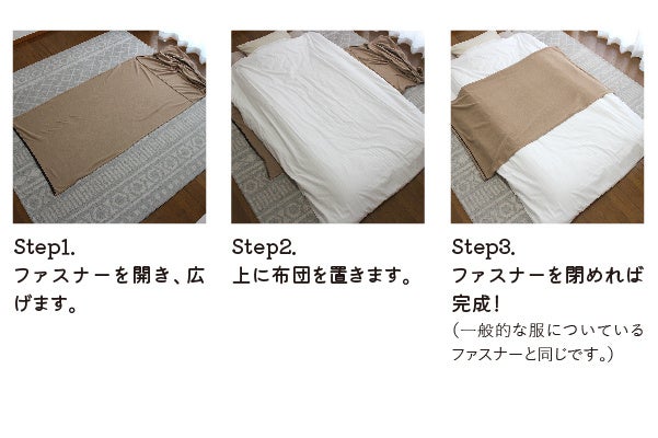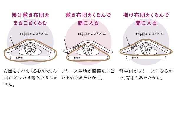 普段お使いのお布団に巻くだけで布団のズレを防止し、あたたかく眠ることができます。