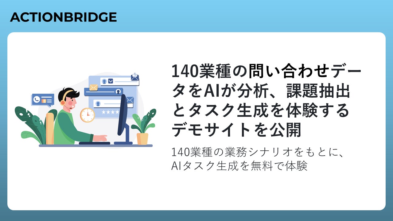 140業種の問い合せデータをAIが分析、課題抽出とタスク生成を体験するデモサイトを公開