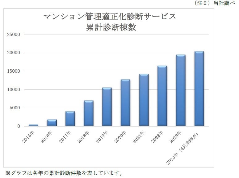 日新火災海上保険株式会社(社長:織山 晋、以下「当社」)は、2024年4月末で「マンション管理適正化診断サービス(注1)」の累計診断棟数が20,000件を突破したことをお知らせします。