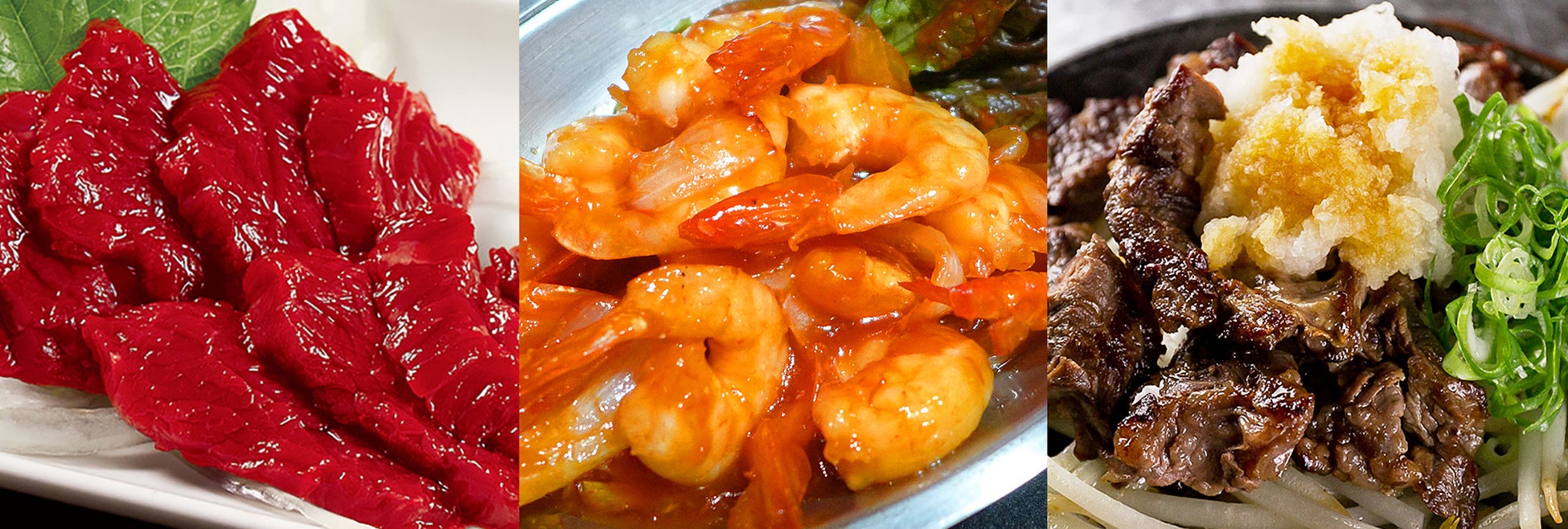 勝男は中津からあげだけではありません。他にも美味しいメニューを多く取り揃えています。自慢の馬刺しは産地直送でいつでも新鮮、クセもなく食べやすい大人気メニューです。鉄板焼や数々の一品料理も弊社開発陣が考案した幅広い渾身のメニューを取り揃えており、食べていただくと普通の居酒屋料理ではないと思っていただけるのではないかと確信しております。