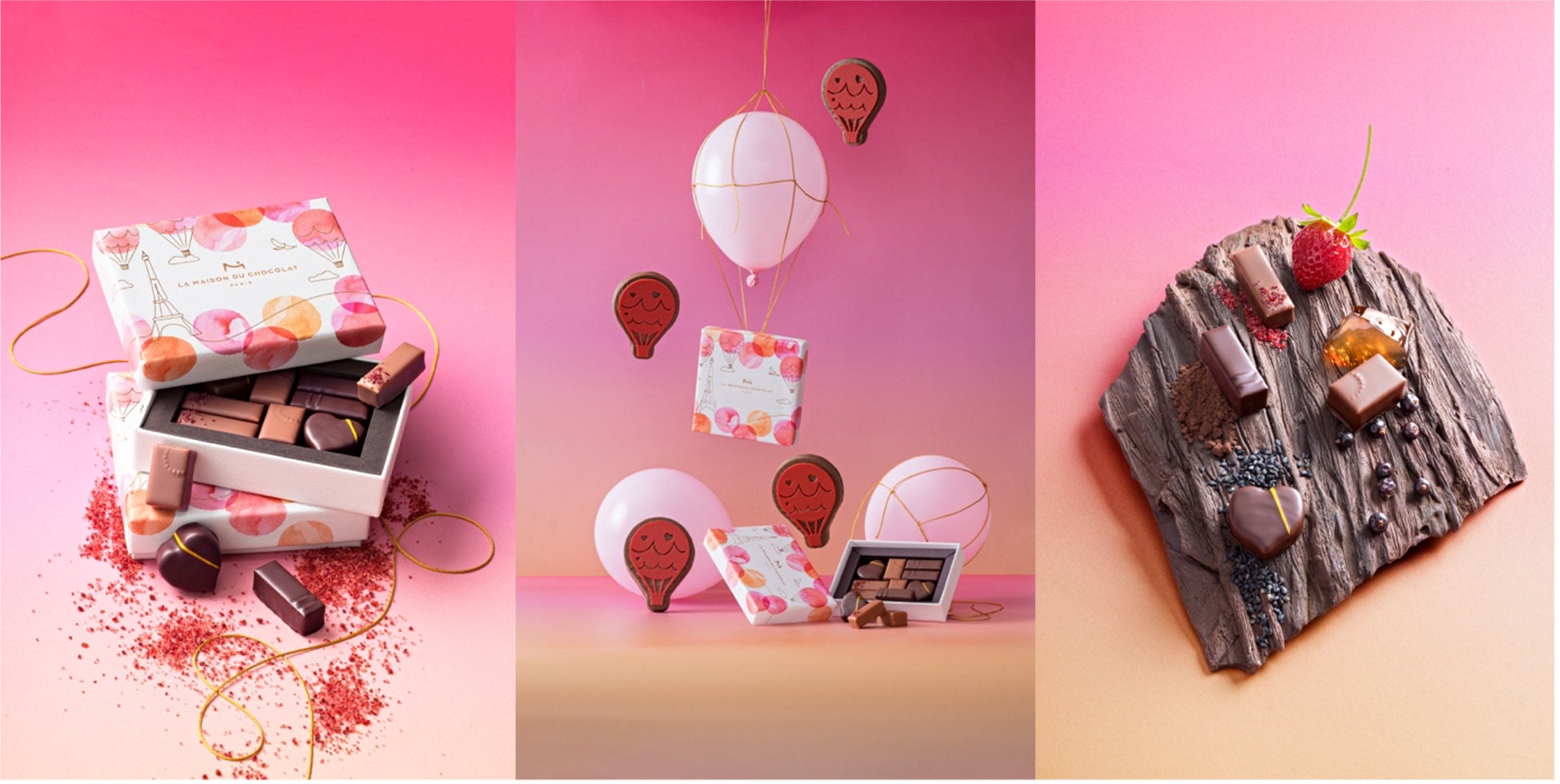 1977年にフランスで創業、類まれなショコラのクリエイターであり、M.O.F.(フランス国家最優秀職人章)ショコラティエ部門の称号を持つシェフ・パティシエ・ショコラティエ、ニコラ・クロワゾーが率いるラ・メゾン・デュ・ショコラは、気球に乗って上空からのパリを楽しむバレンタインコレクション「パリ サンヴォール」を2025年1月中旬より各店舗及びオンラインブティックにて発売予定です。