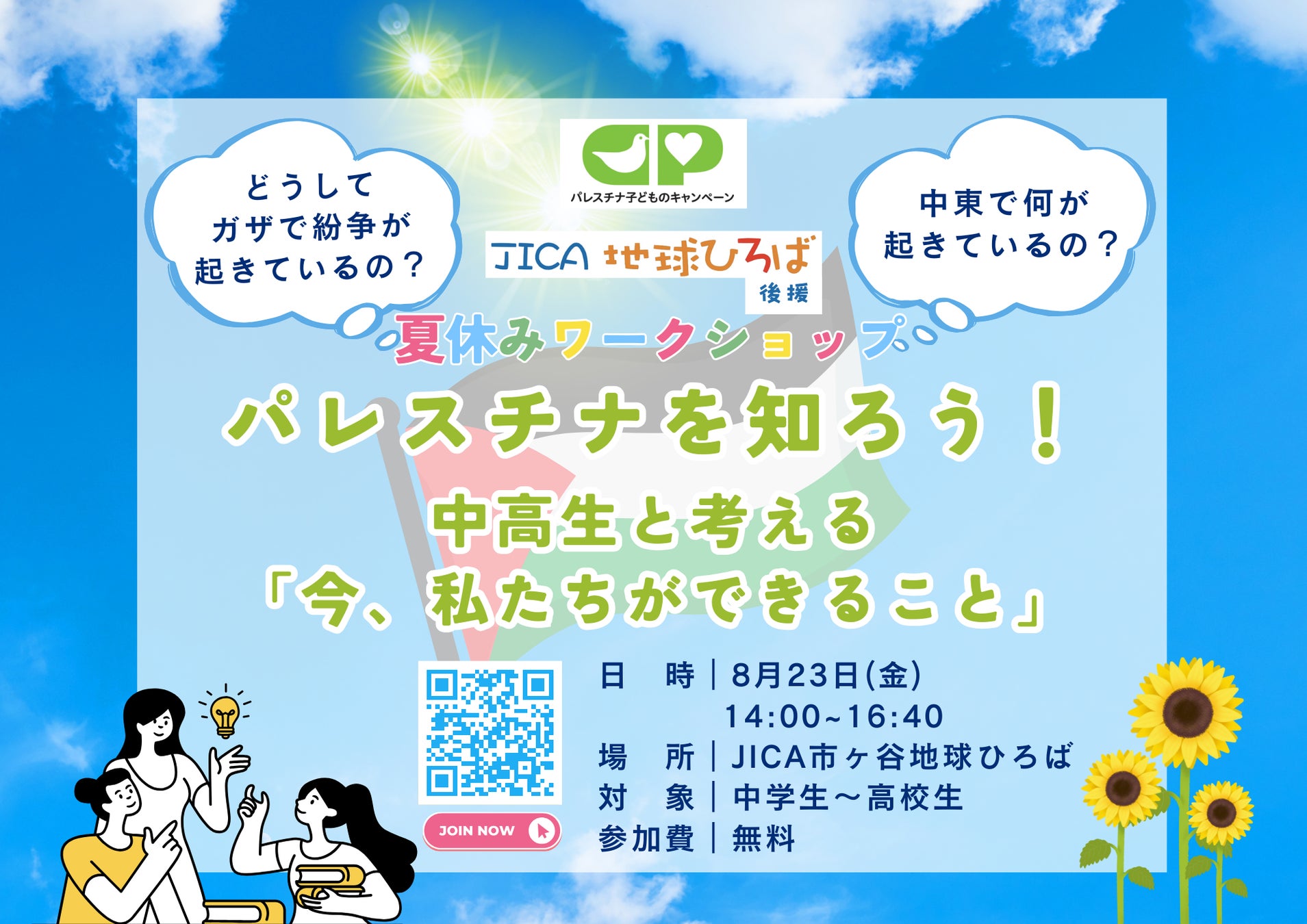 【夏休みSDGs企画】パレスチナを知ろう!~中高生と考える「今、私たちができること」(後援:JICA地球ひろば)