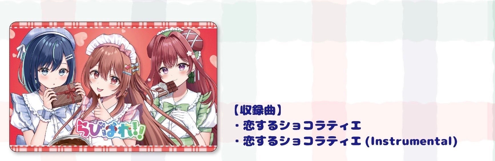 さらに、らびぱれ!!メンバーの魅力が詰まったグッズも販売決定!葵空かのん・咲愛りぼん・狗森よもぎのアクリルキーホルダー&アクリルスタンドが登場します。アクリルキーホルダーは、らびぱれ!!公式YouTubeにも登場する、SDキャラのメンバーの可愛らしい魅力を詰め込んだデザインです。カバンやポーチに付ければ、いつでもらびぱれ!!メンバーと一緒にお出かけ気分を味わえます。新作となるアクリルスタンドは「恋するショコラティエ」のMVで登場する、それぞれの個性を活かした華やかな描き下ろしイラストを使用。デスクやお部屋に飾れば、まるでメンバーがそばで応援してくれているような特別な存在になります!
