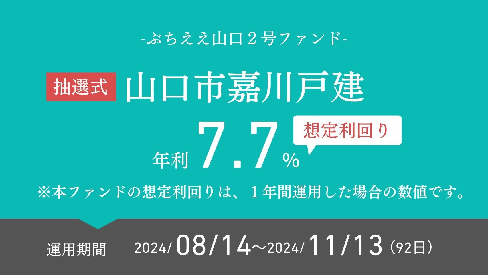 不動産小口化商品「ぶちええ山口2号ファンド」山口市嘉川戸建てを抽選式で本日7月22日より募集開始いたしました