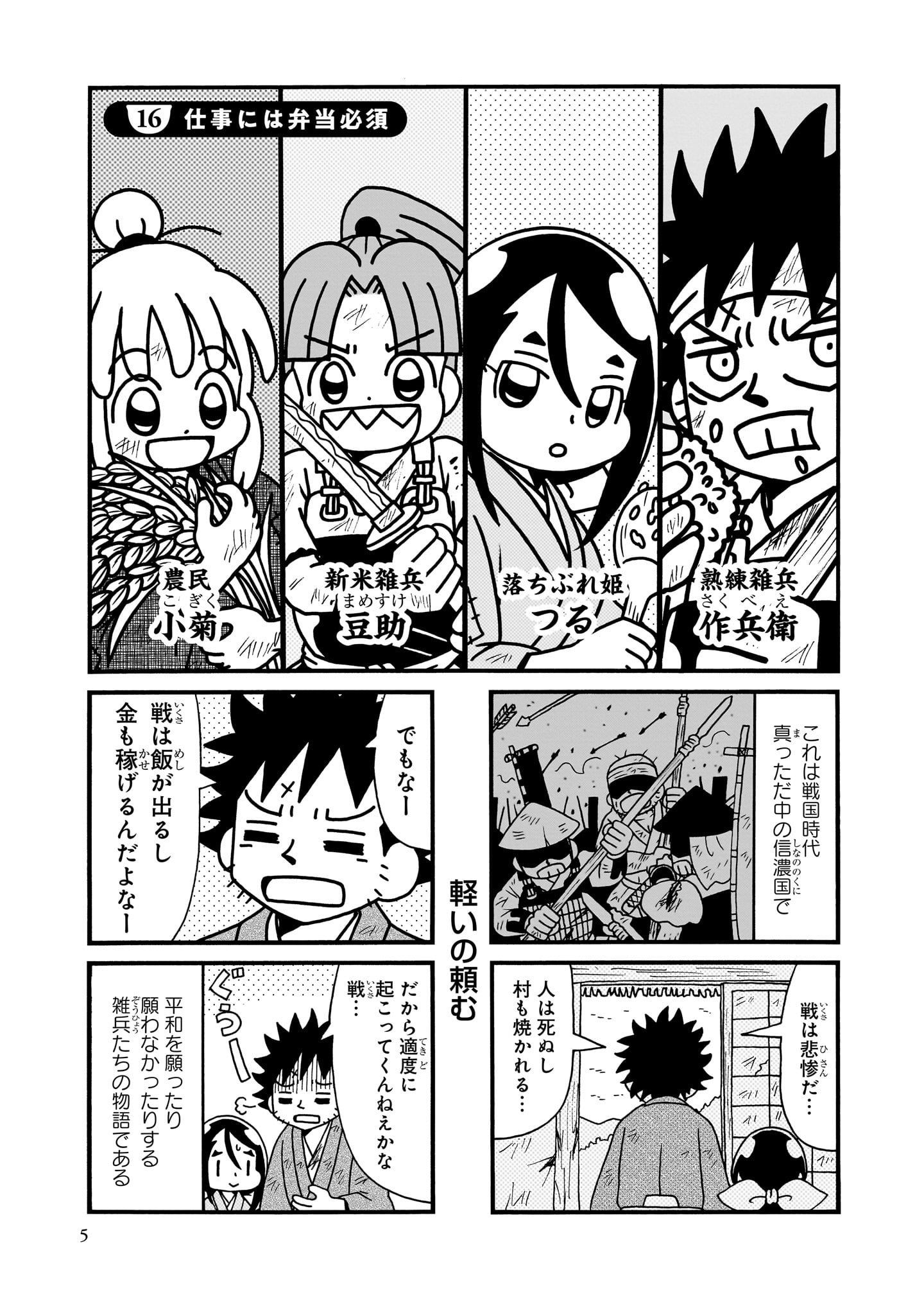 戦国時代の、武将ではなく下層民たちの暮らしに焦点を当てた珍しい戦国メシ4コマ。