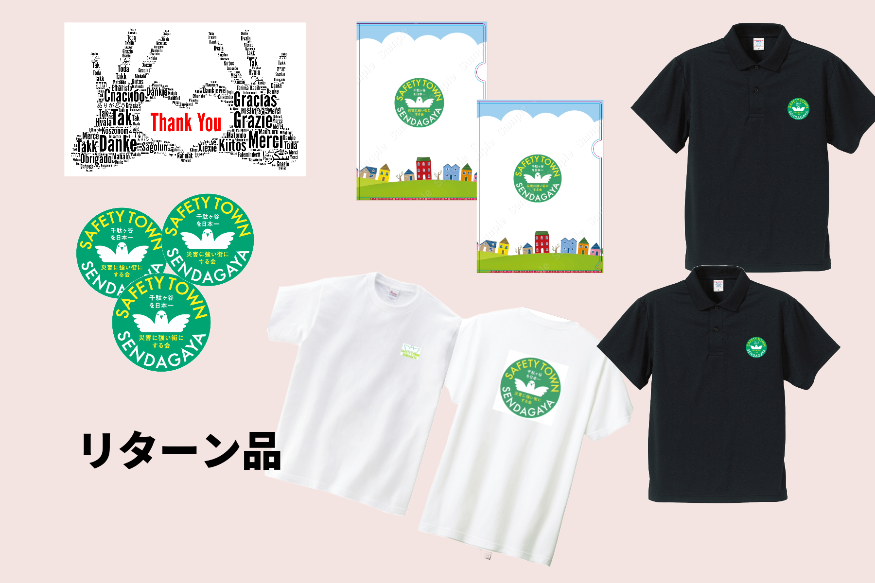 ・寄付額 10,000円 Thank you Card、STSステッカー、STSクリアファイル10部、STS黒ポロシャツ(L、XL)