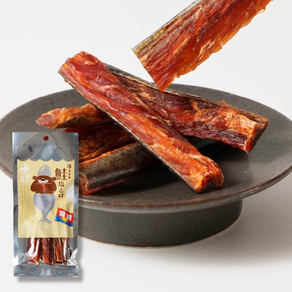 北海道産に古くから伝わる、アイヌの時代から続く伝統的な製法の鮭とばです。天然鮭と塩のみでじっくり仕上げる一品です。