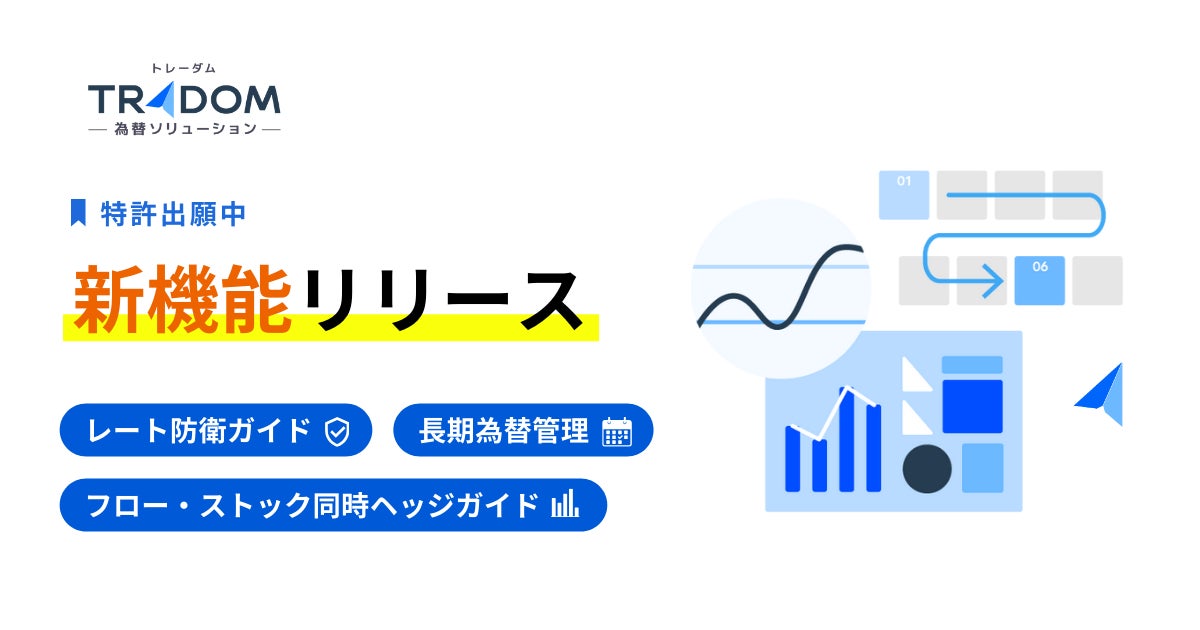 トレーダム株式会社(本社:東京都千代田区、代表取締役社長:浦島 伸一郎、代表取締役:阪根 信一 以下、当社 )は、輸出入企業向けの新機能「レート防衛ガイド」(特許出願中)と輸入企業向けの「長期為替予約管理」、輸出企業向けの『フロー(外貨建取引)とストック(外貨預金)の同時ヘッジ』(特許出願中)機能を追加したことをお知らせします。