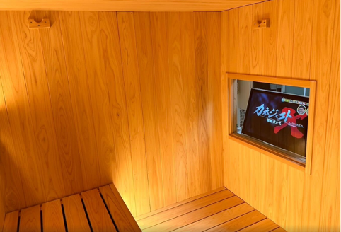 サウナ室の木材が熱を反射し輻射熱を起こすことで、サウナ室内の熱効率を上げ、最高110度の高温状態を作ります。