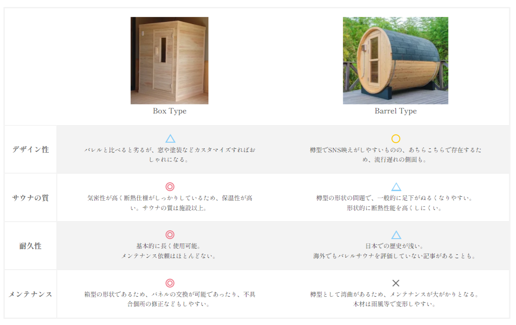 バレルサウナは樽型であり、形が樽のように曲がっていることから、長期保有した際のメンテナンス面でもデメリットが生じやすくなります。