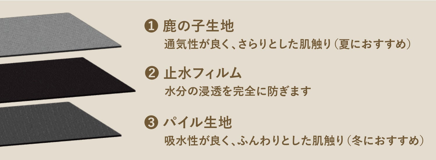 高い防水性と吸水性で、ベッドだけではなくソファーや車のシートなど、濡れや汚れのケアが大変なものを守ります。リバーシブル仕様で表裏の質感が異なり、お好みに合わせてご使用いただけます。
