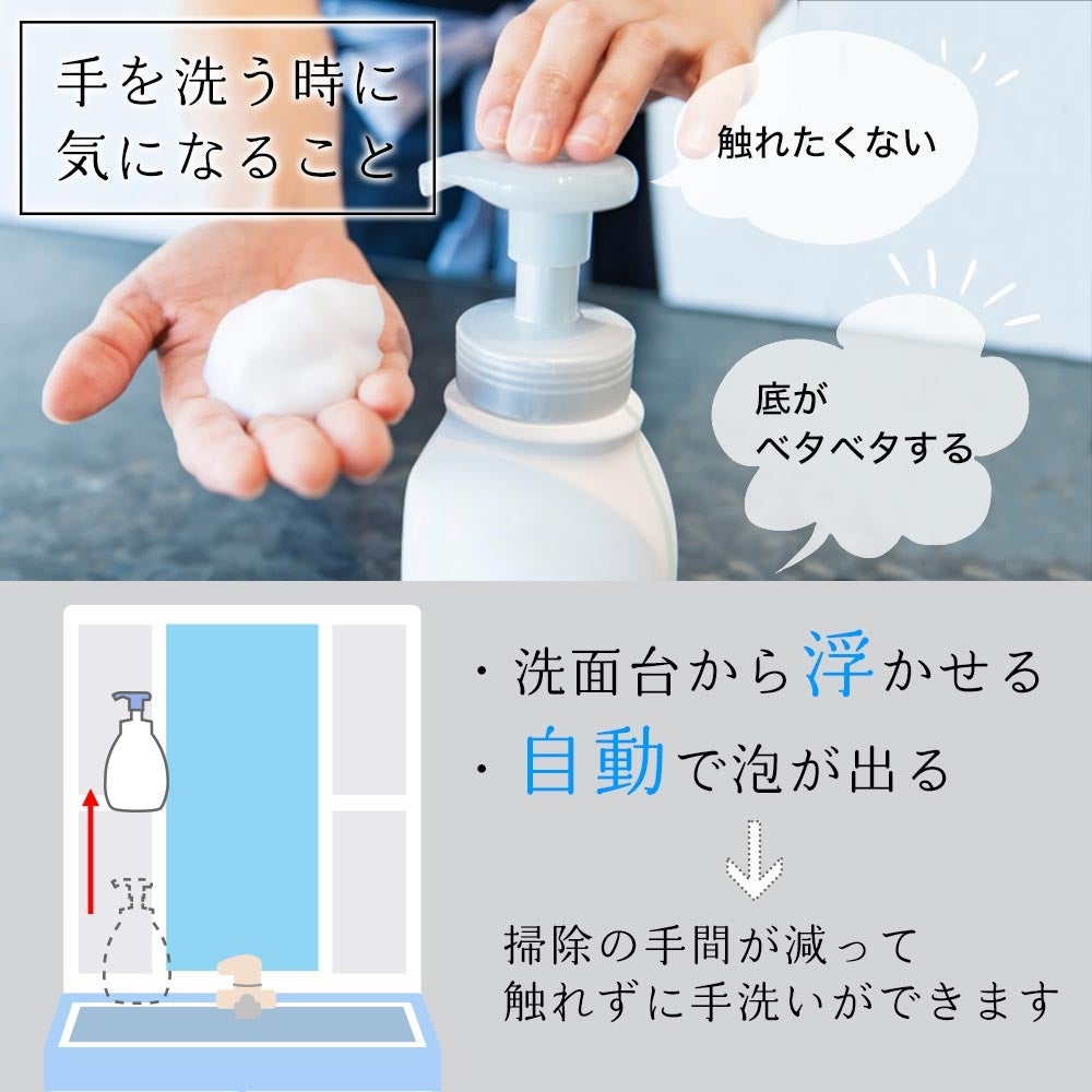 ■手をかざすと泡が出てくる浮かせて設置するオートソープディスペンサー