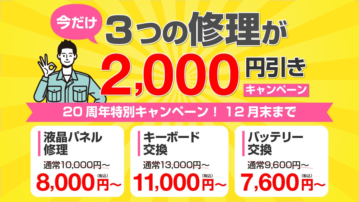 これを記念した20周年祭の一環として、お得な修理キャンペーンを開始しました。