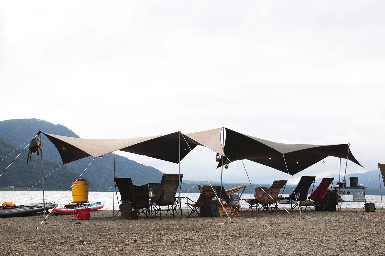 セッティングテープを使用せずに普通のタープとしても使用できるので、デイキャンプにも便利です。