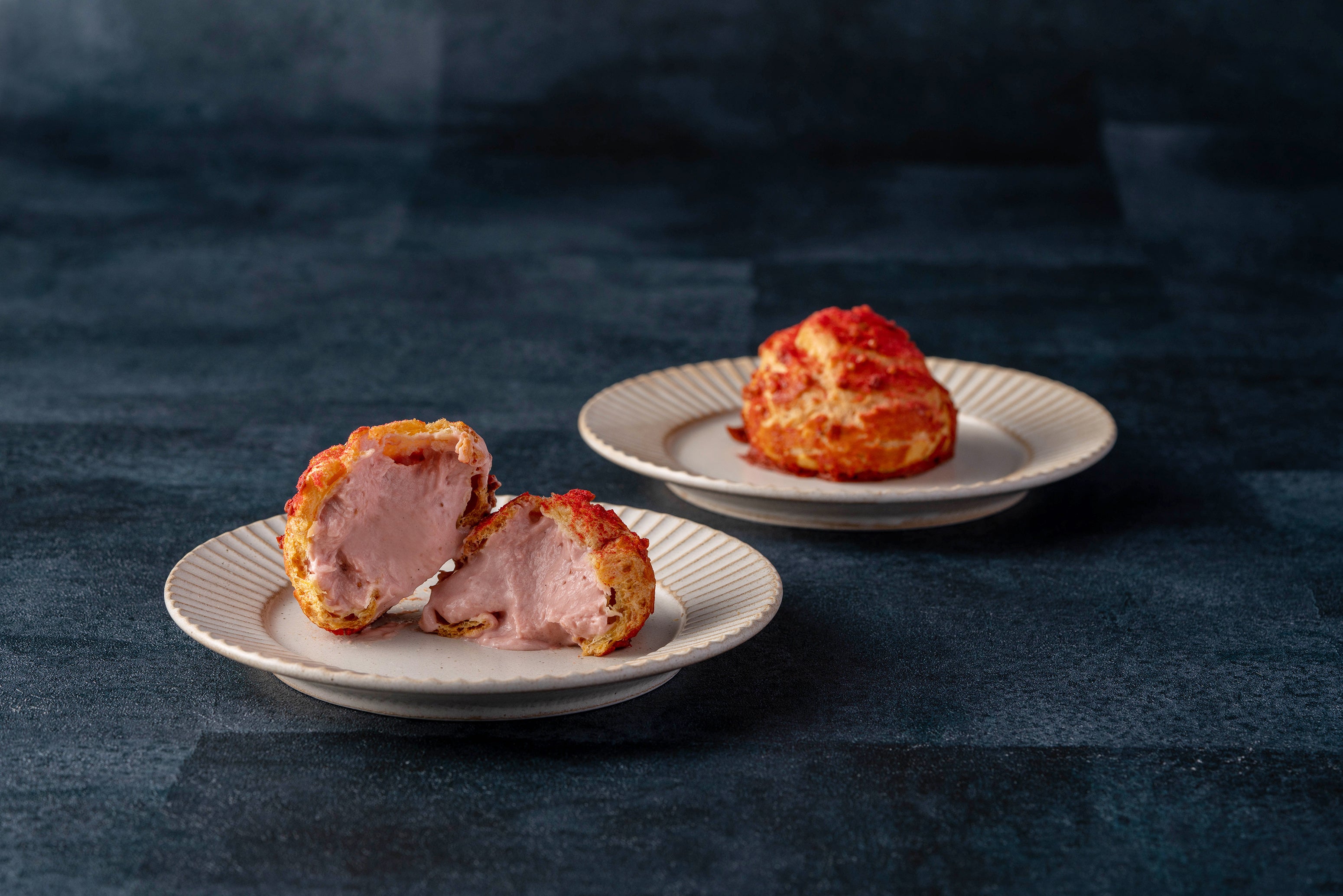 店内のオーブンで焼き上げたほんのりピンク色のシュー生地。