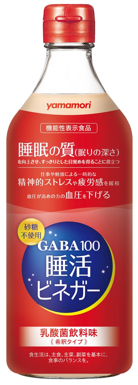 「GABA100睡活ビネガー」は、乳酸菌飲料味のお酢飲料(ビネガードリンク)です。本品には、自社の醸造研究の過程で発見した独自の素材「GABA100(ギャバ100)」を使用しています。