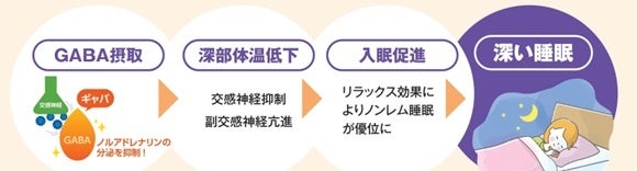 睡眠の質向上を助ける素材の1つとしてGABA(ギャバ、γ-アミノ酪酸)が注目されています。GABAは植物や人体に含まれるアミノ酸の1種で、必要な量を維持するためには毎日摂取することが必要です。GABAには「抑制系の神経伝達物質」としての働きがあり、①睡眠の質の向上、➁ストレス・疲労感の緩和、➂高めの血圧を下げるなど数多くの機能が報告されています。