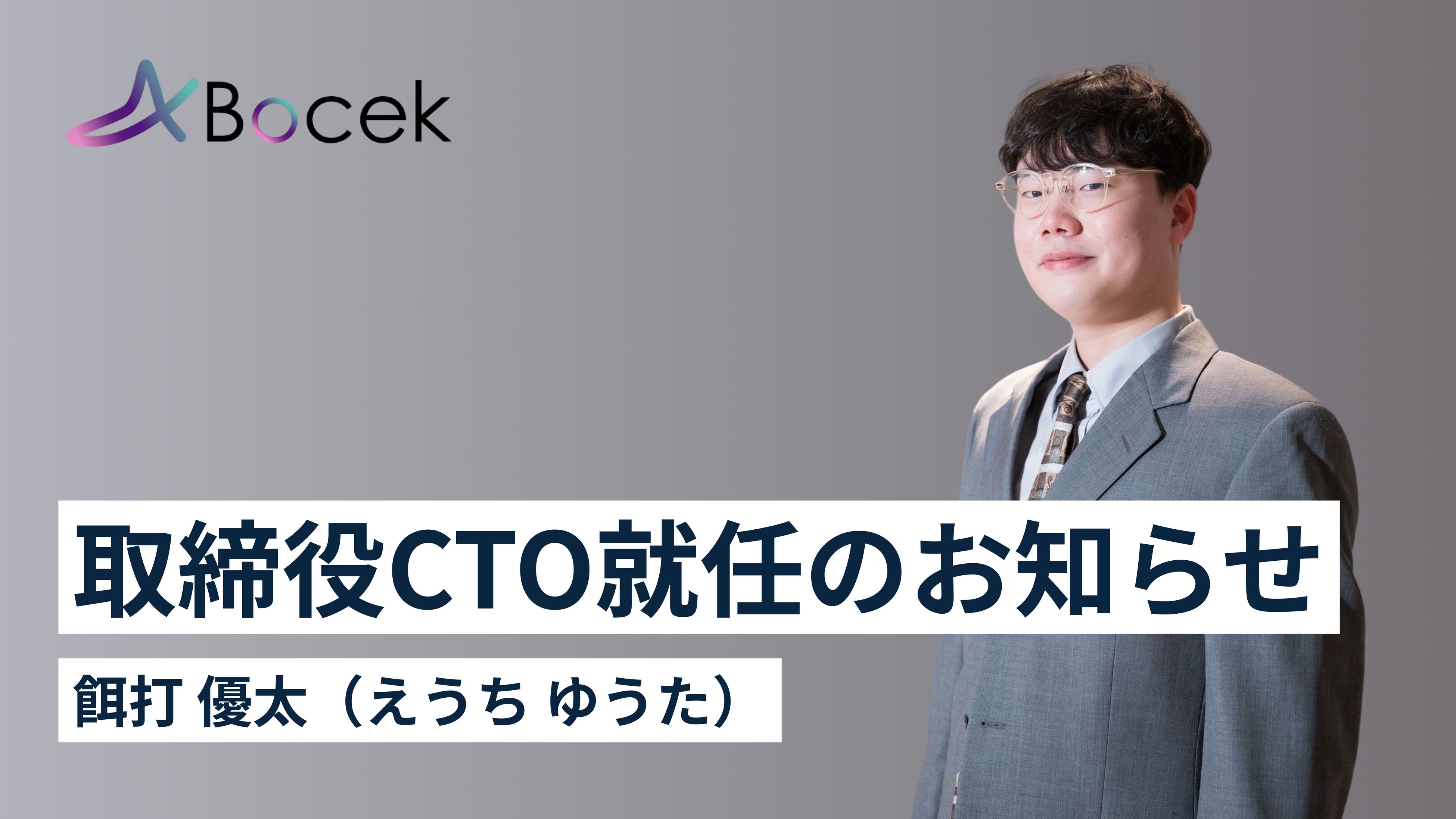 株式会社Bocek(本社:東京都港区、代表取締役CEO:沖村 昂志)は、新たに餌打 優太を取締役CTOとして選任したことをお知らせします。