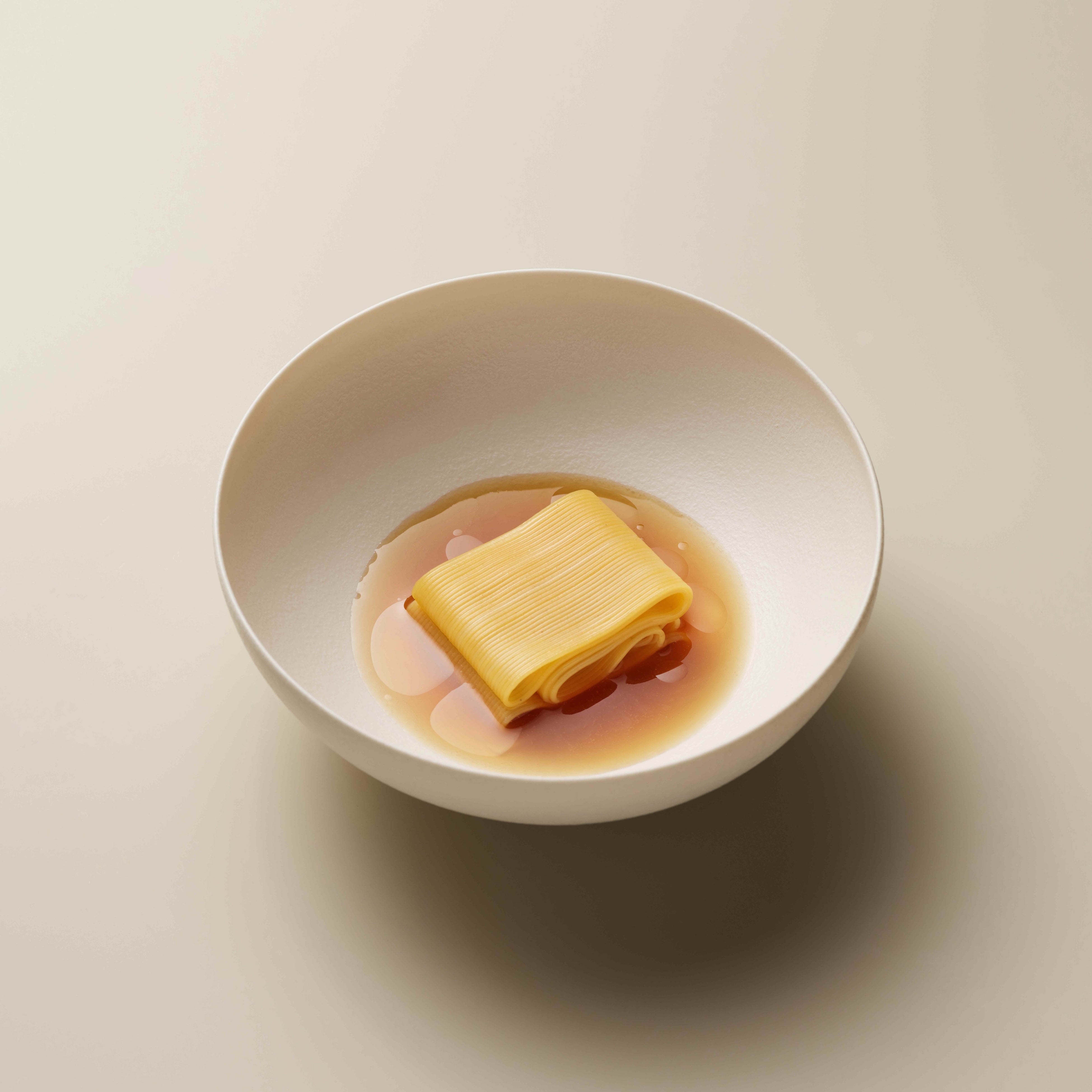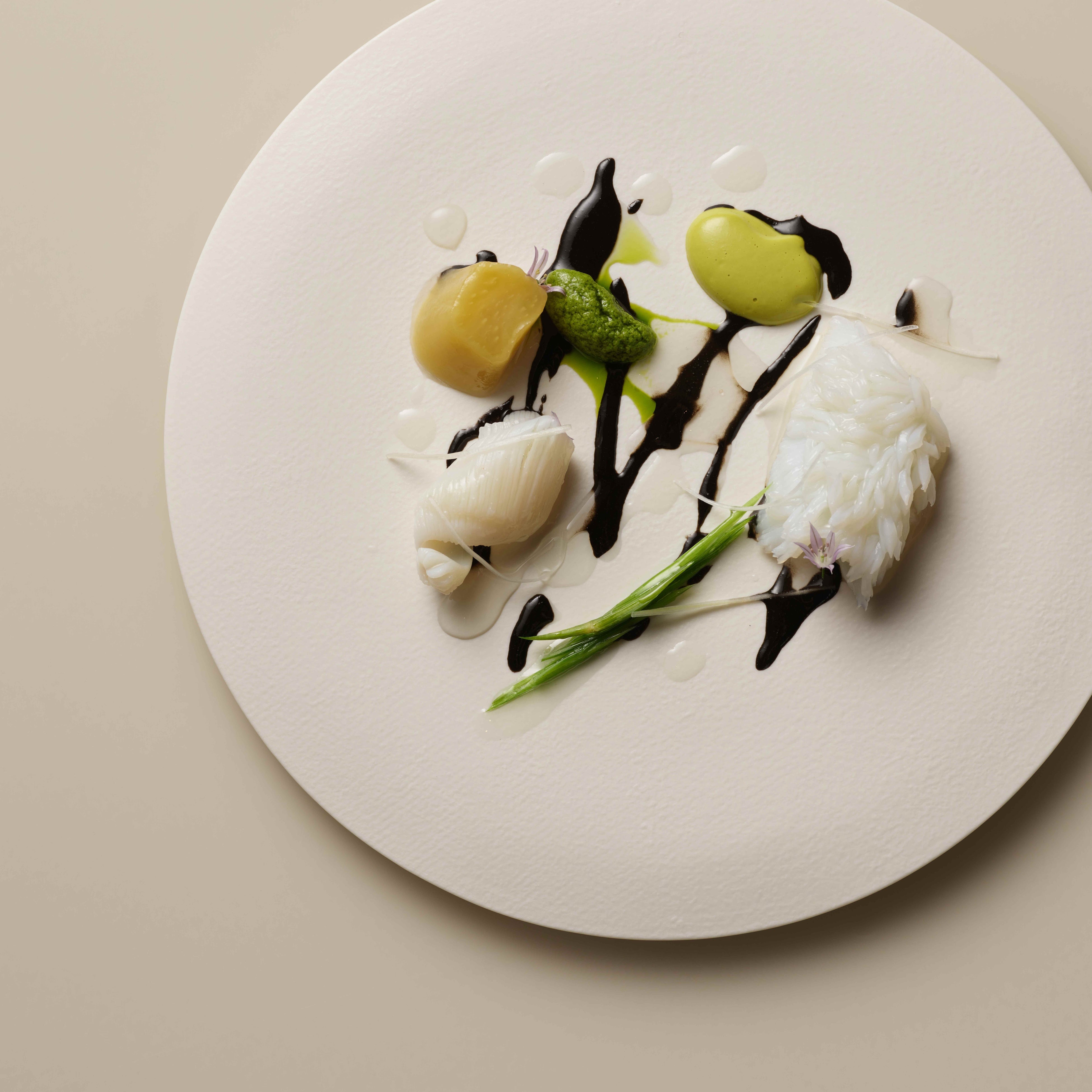 チョ・シェフが生み出す料理は、一般の人々に親しみのある料理を、奥行きと精密さをもって再構築すること、そして優れた調理技法をもって韓国ならではの風味を引き出す事に焦点が当てられています。レストランの代表料理としては、エビの頭から抽出した、強い旨味を持つ濃縮だしで作ったコチュジャンを合わせた海老の料理、韓国の定番料理であるオジンオポックム(いかの旨辛炒め)をファインダイニング風にアレンジした、ヤリイカにイカ墨のチョジャン(韓国風甘辛酢味噌)を添えた一皿などが挙げられます。釜山で育った幼少期の記憶を元に、チョ・シェフは釜山の地元料理、テジクッパ(豚肉のクッパ料理)もファインダイニング用にアレンジしています。一般的には小エビの塩辛と一緒に食べられるこの料理をキャビアで仕上げることで、親しみやすさの中に、思いがけないモダン韓国料理のエッセンスを加えているのです。