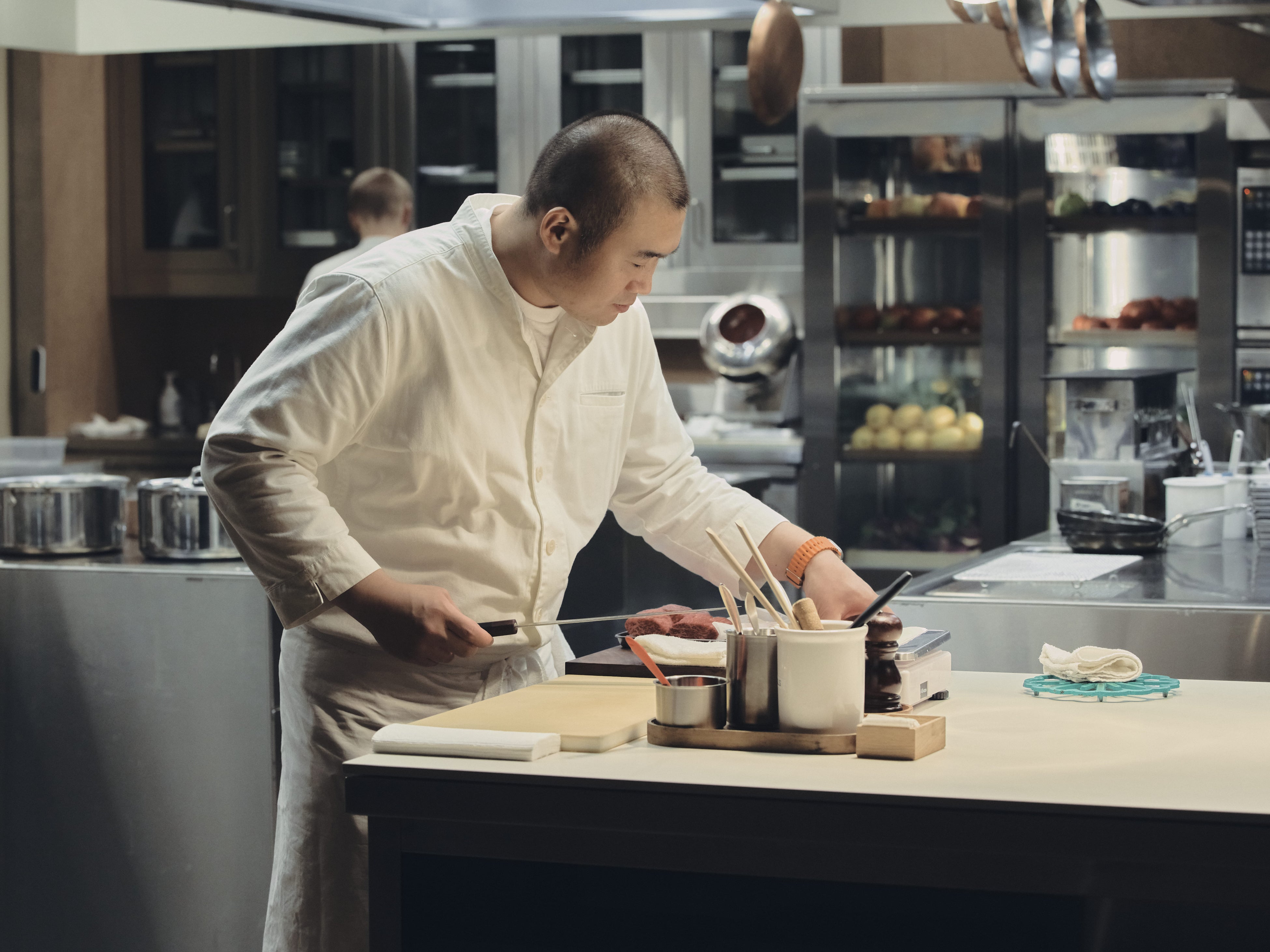 チョ・シェフは、ナパ・バレーにある、トーマス・ケラー(Thomas Keller)氏が率いるザ・フレンチ・ランドリー(The French Laundry)やフランスのラ・メゾン・トロワグロ(La Maison Troisgros)で研鑽を積んだ後、韓国系アメリカ人の著名シェフ、コリー・リー(Corey Lee)氏が率いる、サンフランシスコのファインダイニングレストラン、べヌー(Benu)にて8年間に渡り料理長を務めるという輝かしい経歴を有しています。その後ソウルに帰国し、長年の夢であった自身のレストラン、サンを開業しました。レストランの精緻を極めたテイスティングメニューは、韓国料理のエッセンスを利かせつつ、クラシックなフランス料理にシェフならではの自由な感覚の解釈を加えた、季節感に溢れる料理で構成されています。