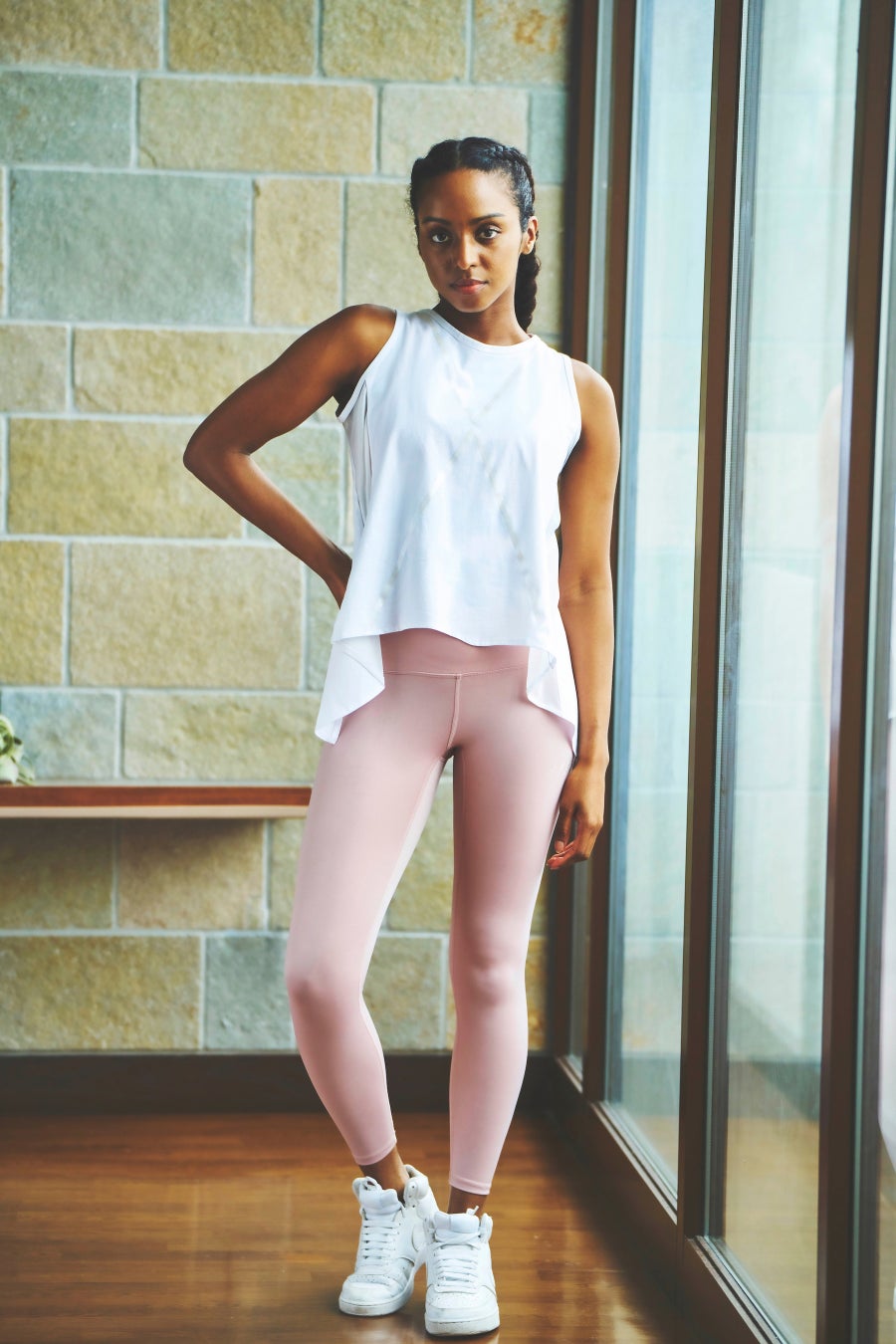ブラトップやタンクトップと重ね着することで、アクティブなシーンのコーディネートの幅を広げてくれる【TIE BACK LAYERED TANKTOP】はそのまま着用することでシルエットに変化を与え重ね着を楽しめるのはもちろん、後ろを結ぶことでアクティブさを感じるスタイルに変えることもできる2WAY仕様。側面にメッシュ素材を採用することでトレンドの透け感を表現しつつ通気性も持たせ、機能性を兼ね備えていることが特徴です。