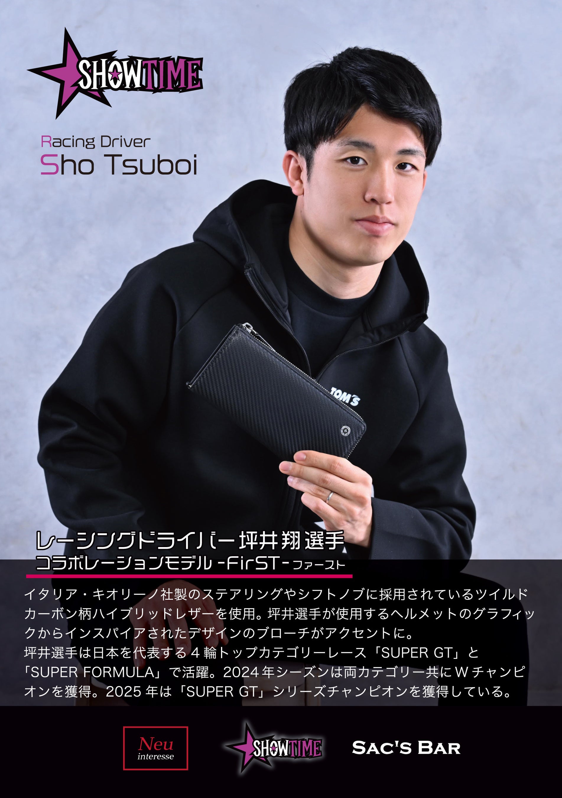株式会社サックスバーホールディングス(本社:東京都葛飾区 代表取締役社長執行役員:木山剛史)は、メンズ革小物ブランド「Neu interesse(ノイインテレッセ)」および、国内トップクラスで活躍するレーシングドライバー・坪井翔選手とのトリプルコラボレーションモデル「FirST -ファースト-」を2026年4月24日(金)より発売いたします。